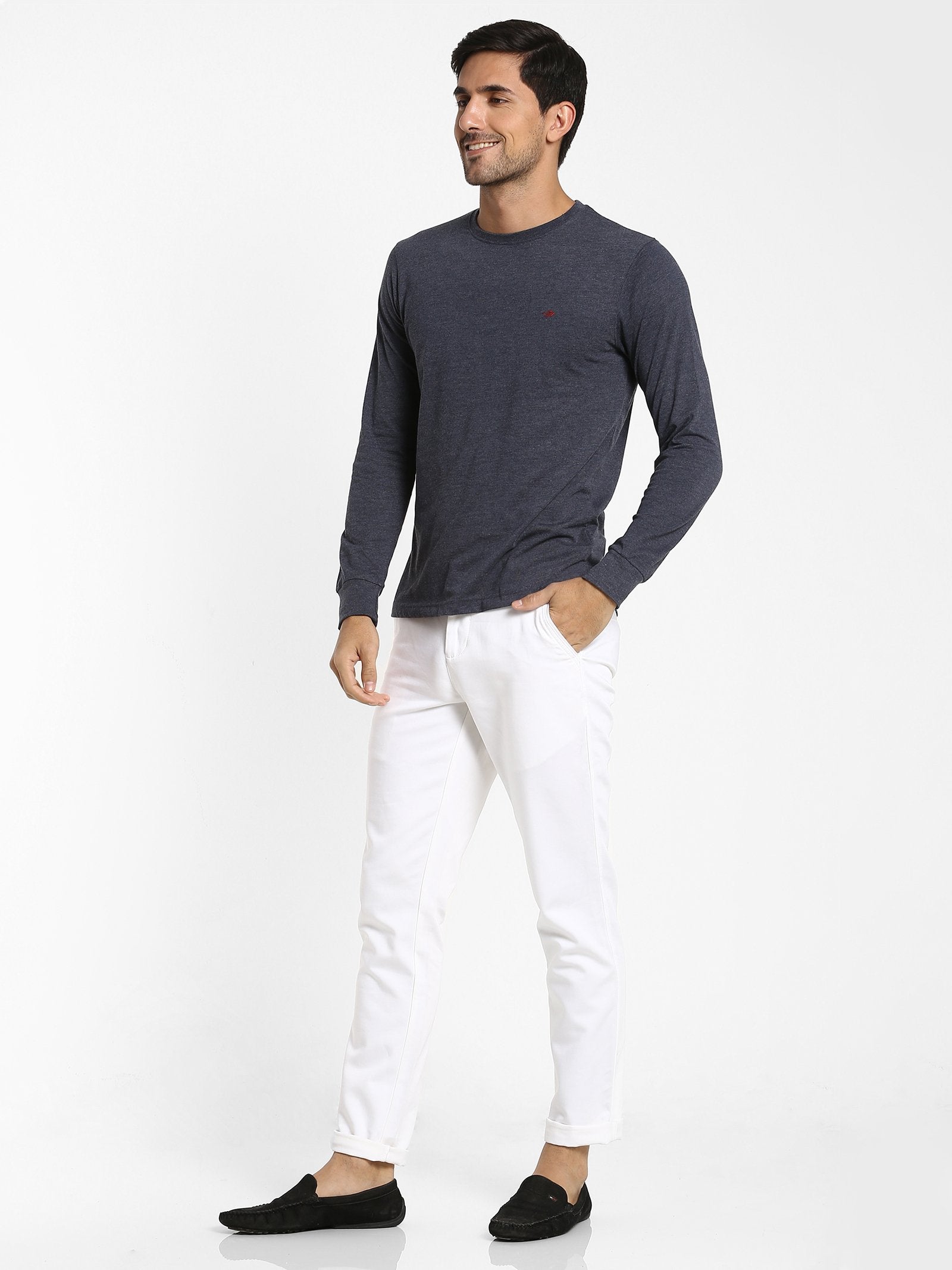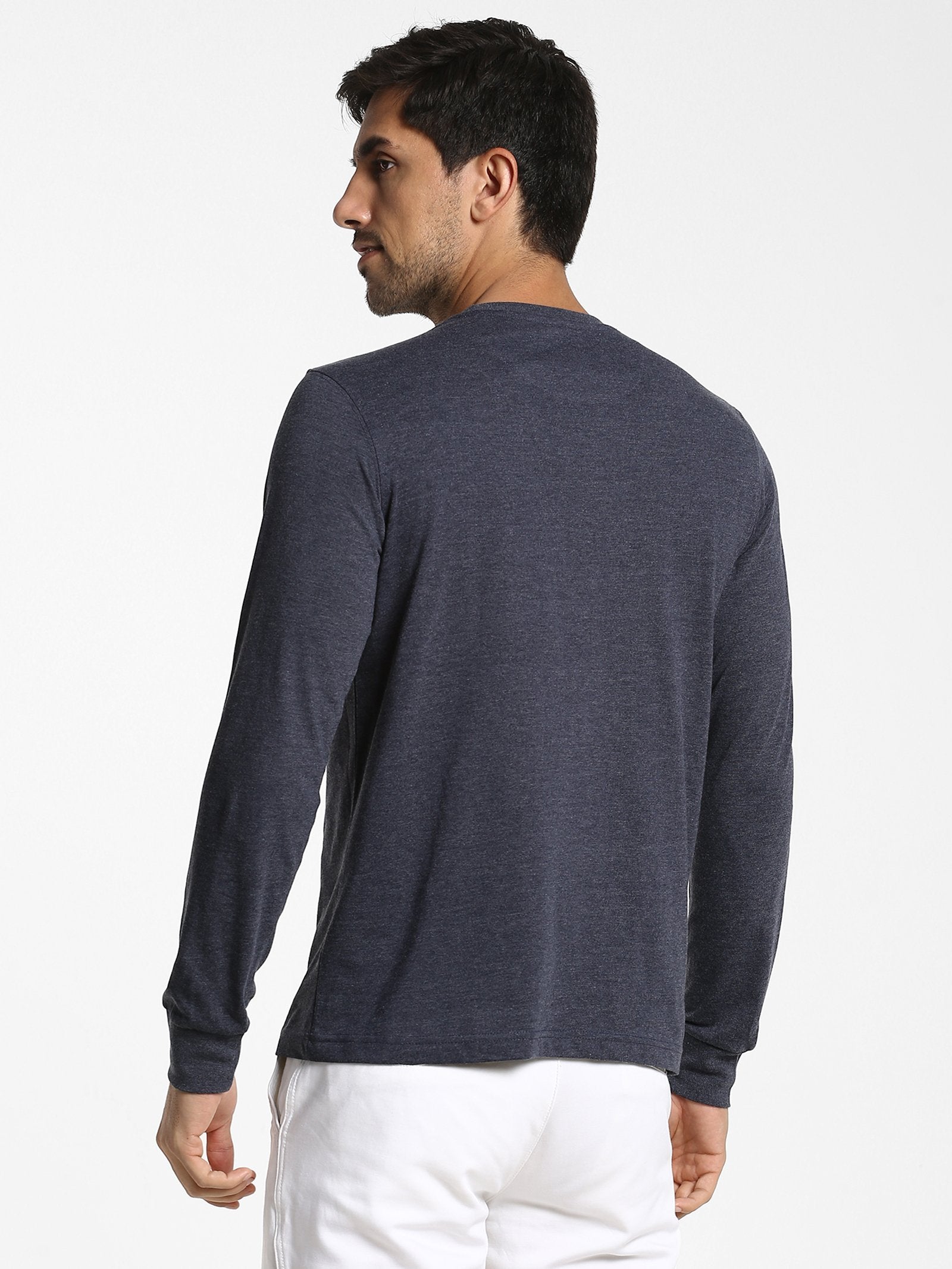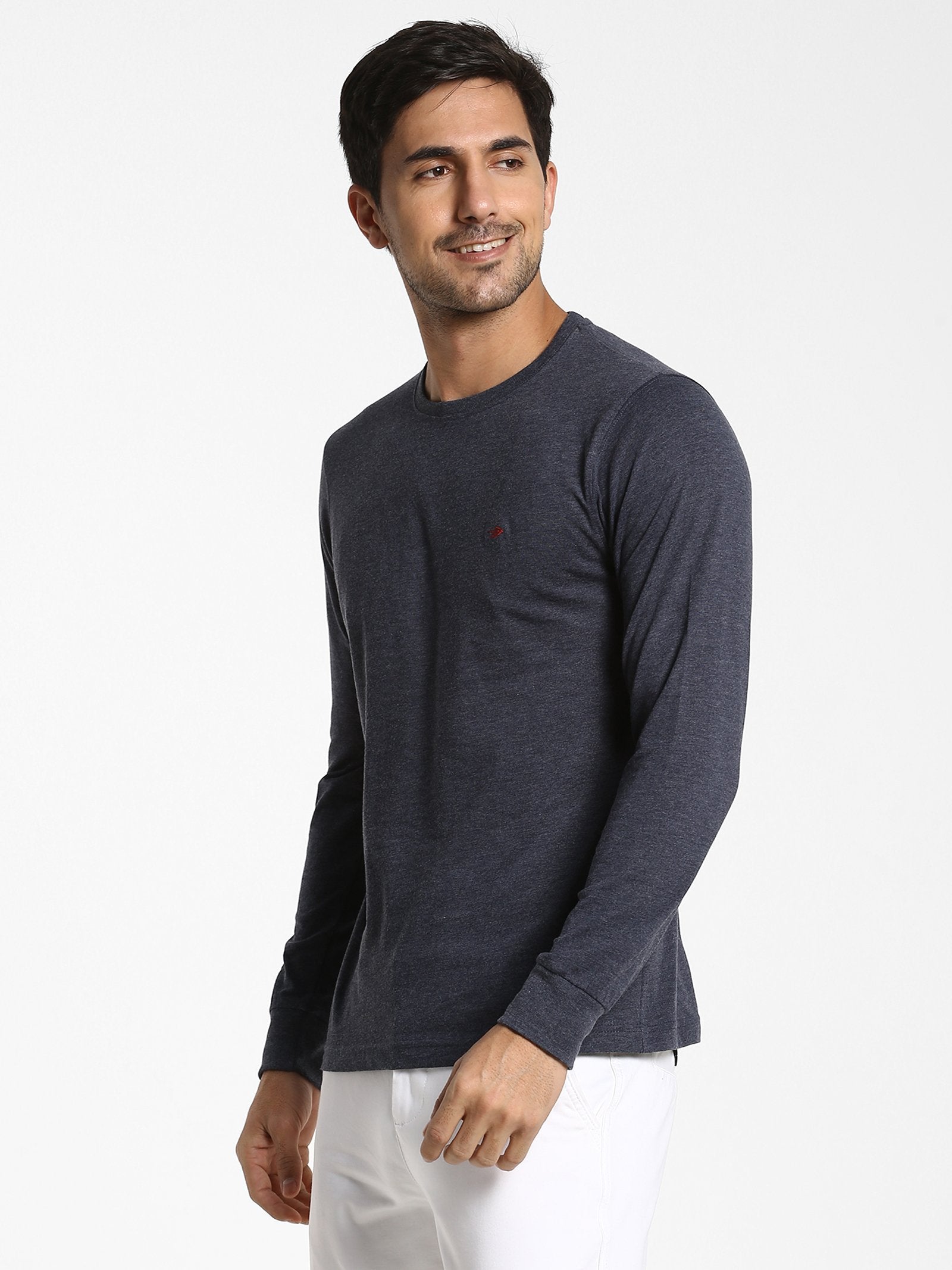 Color: Navy Melange Fabric: 100% Cotton Pattern: Printed Sleeve: Long Sleeve Collar/Neck: Crew Neck Fit: Casual Fit Occasion: Basic Hemline: Straight Wash Care: Machine wash according to instructions on care label...