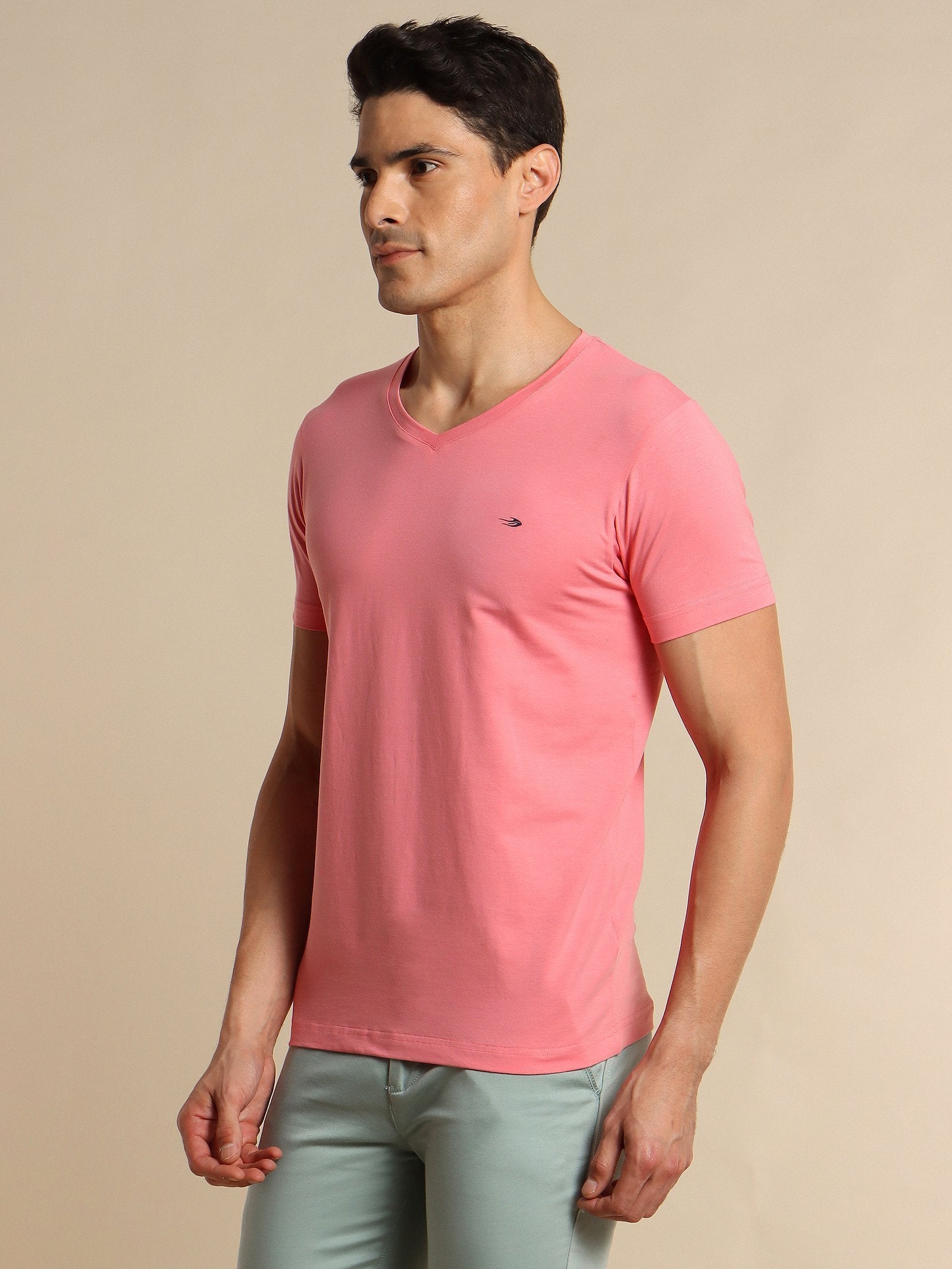 Pink Plain Stretch T-Shirt