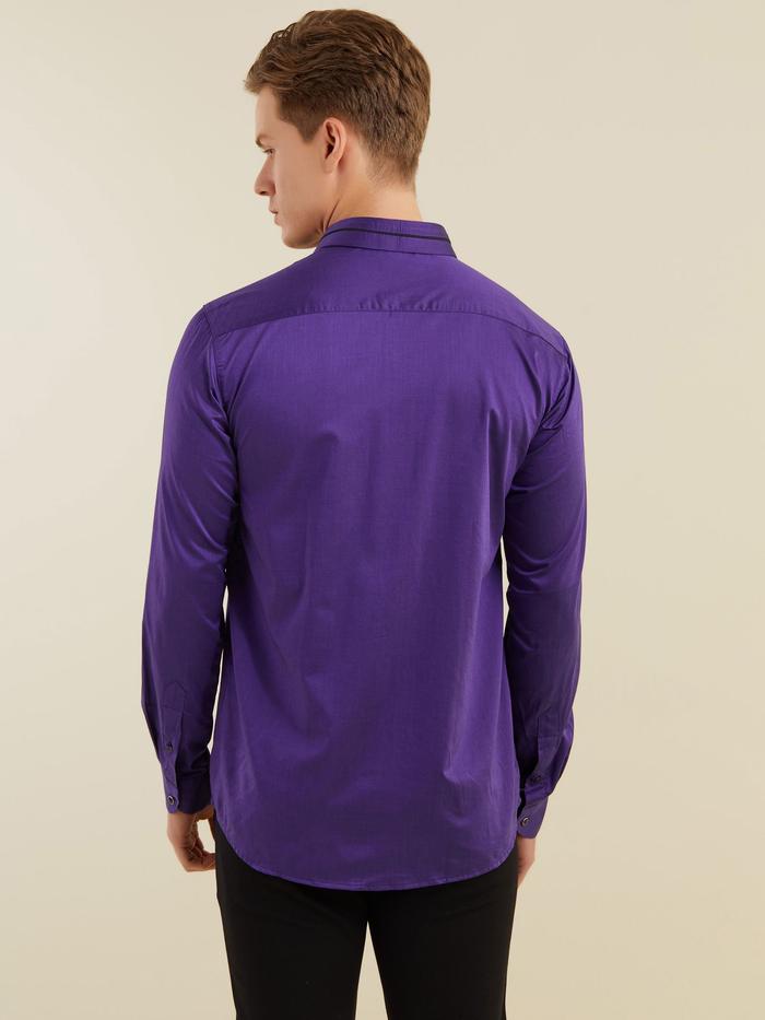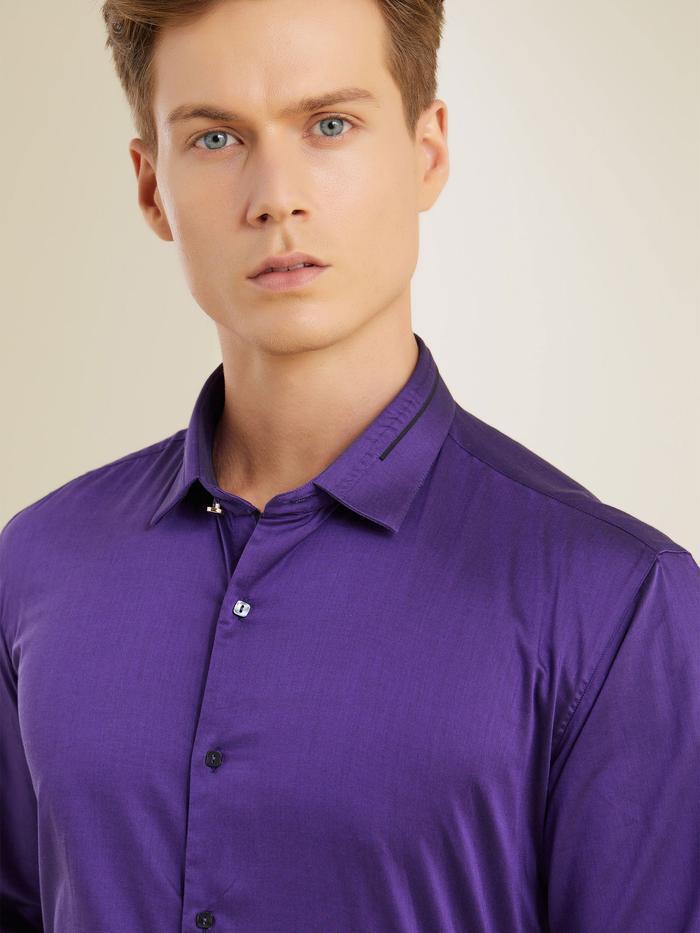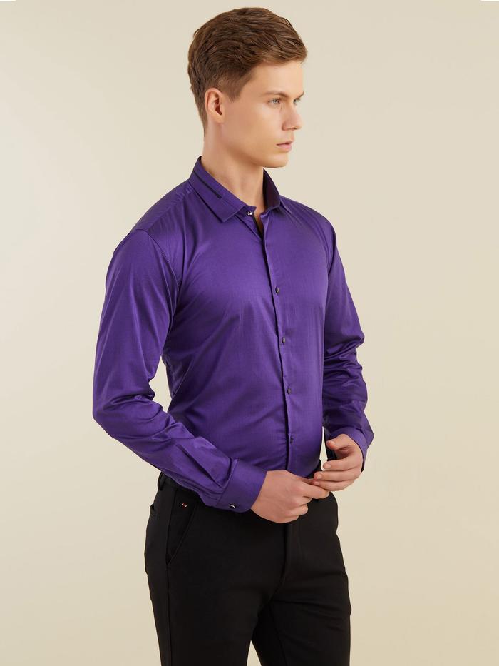 Fabrics Content: 100% Cotton Fabric Texture: Twill Pattern: Plain Fit: Higgers Fit Closure: Button Occasion: Party Wear Wash Care: Machine wash according to instructions on care label Model Height: 6 Ft Wearing Size: L/40 Sleeves: Long Sleeve Collar/Neck: Spread Collar Hemline: Curve