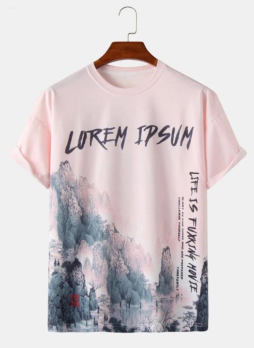 - A slim fit t-shirt printed with hills and river and its looks like very attractive.