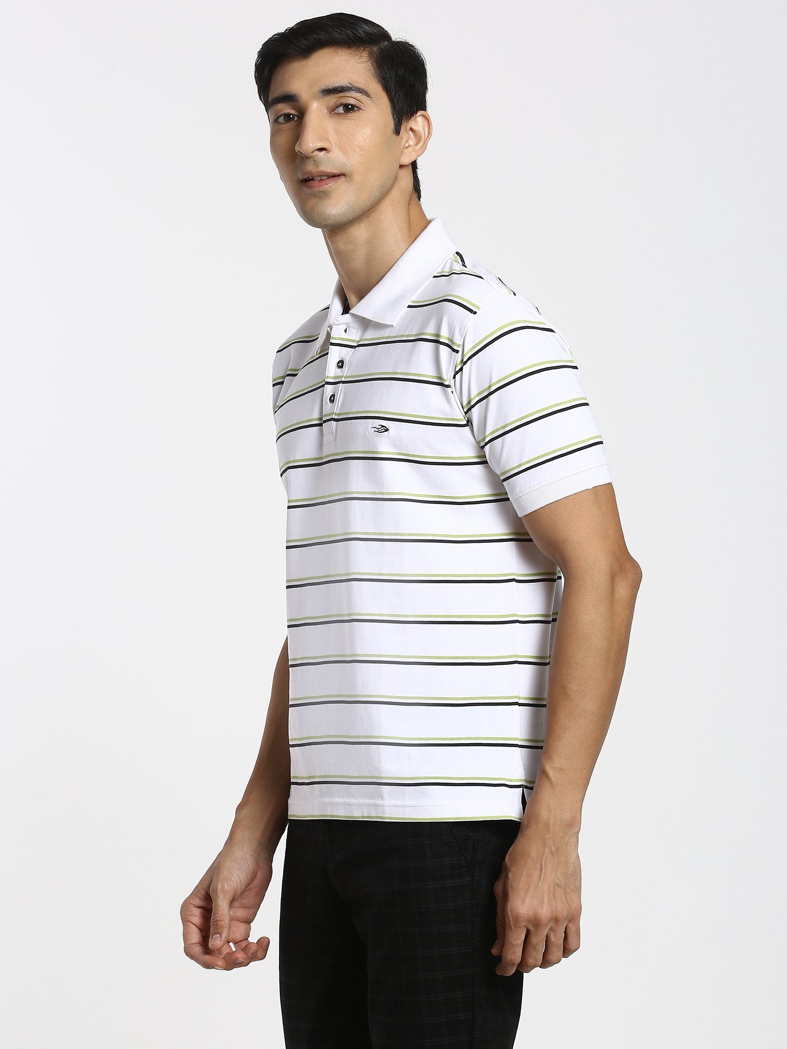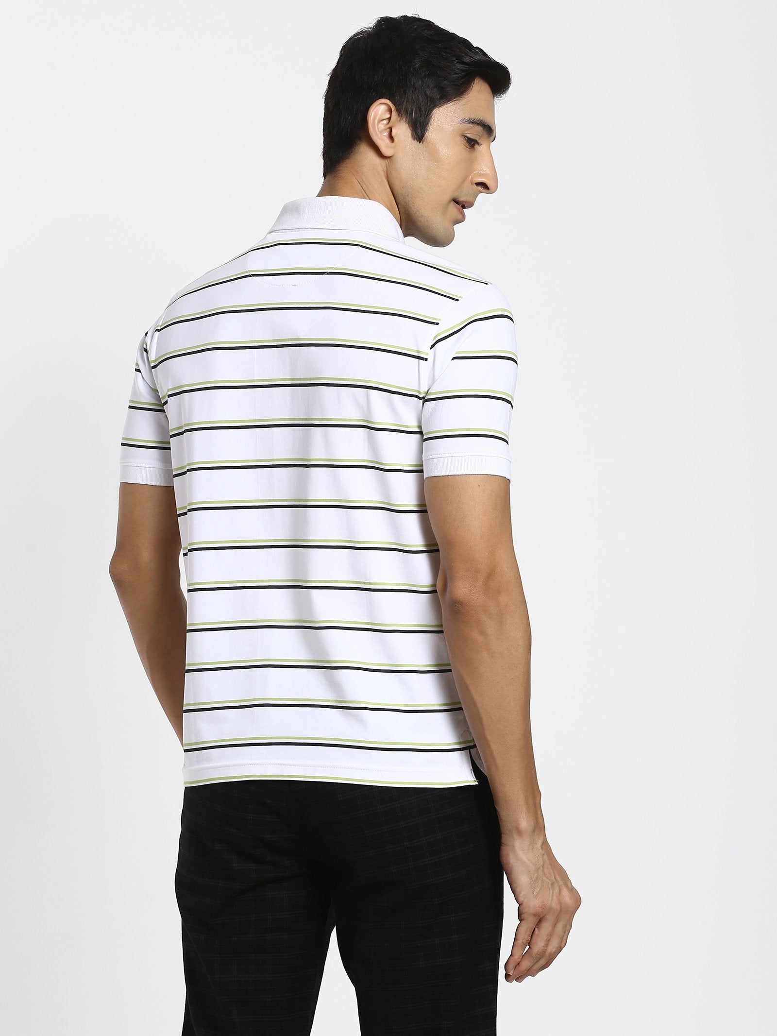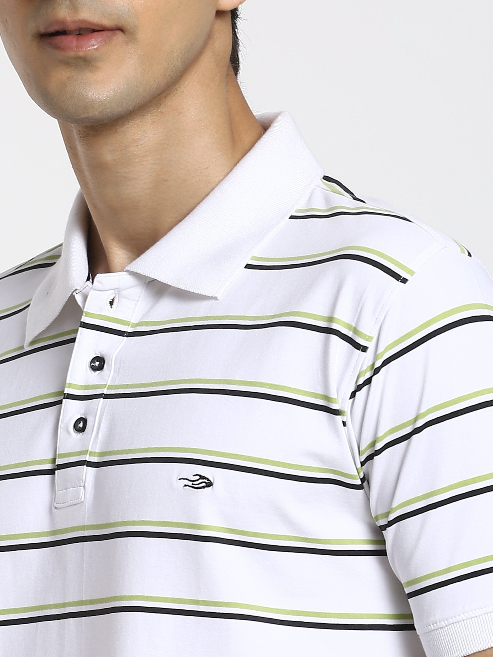Color: White Fabric: 95% Cotton 5% Stretch Characteristics: Stretch Pattern: Striped Sleeve: Short Sleeve Collar/Neck: Crew Neck Fit: Regular Fit Occasion: Basic Hemline: Straight Closure: Button Wash Care: Machine wash according...
