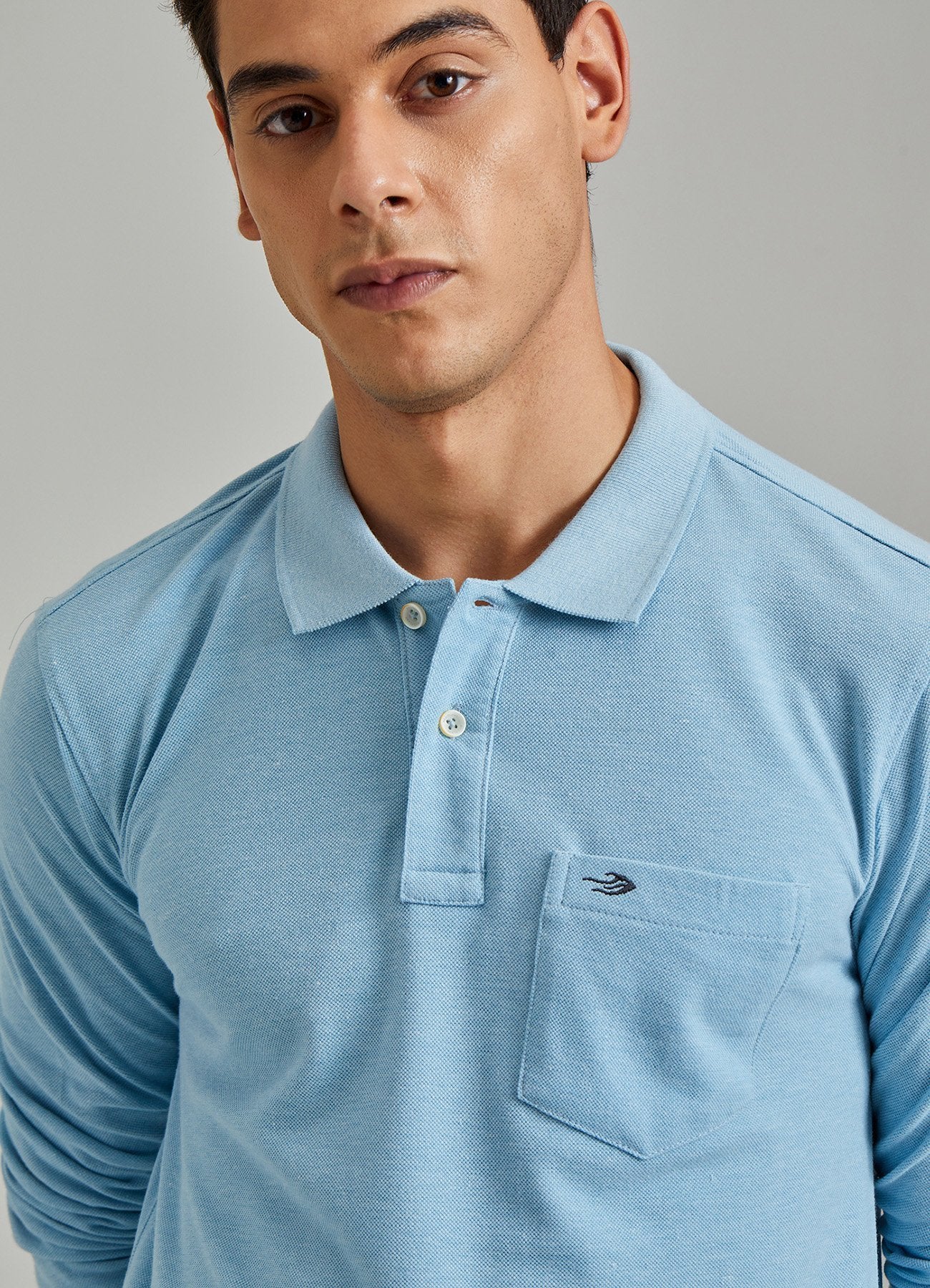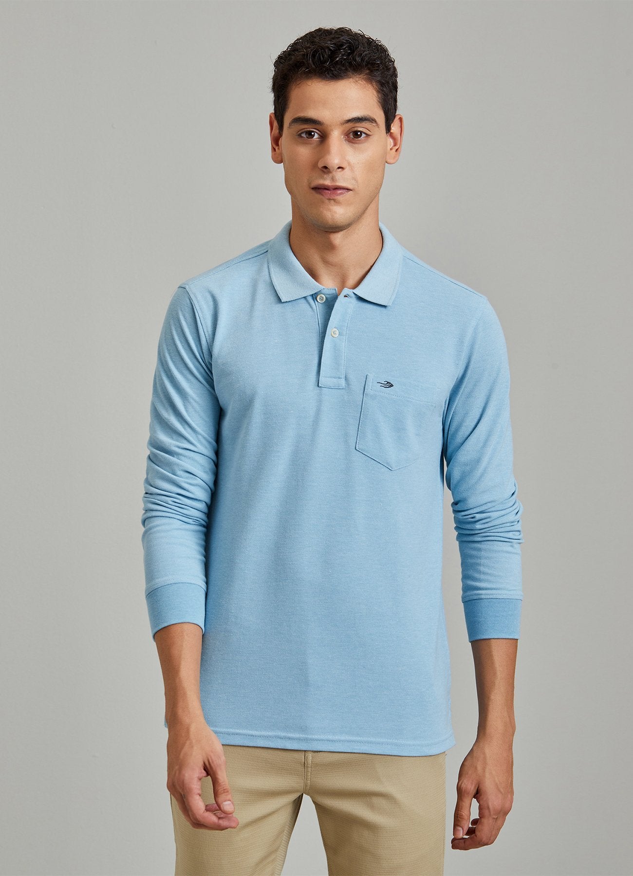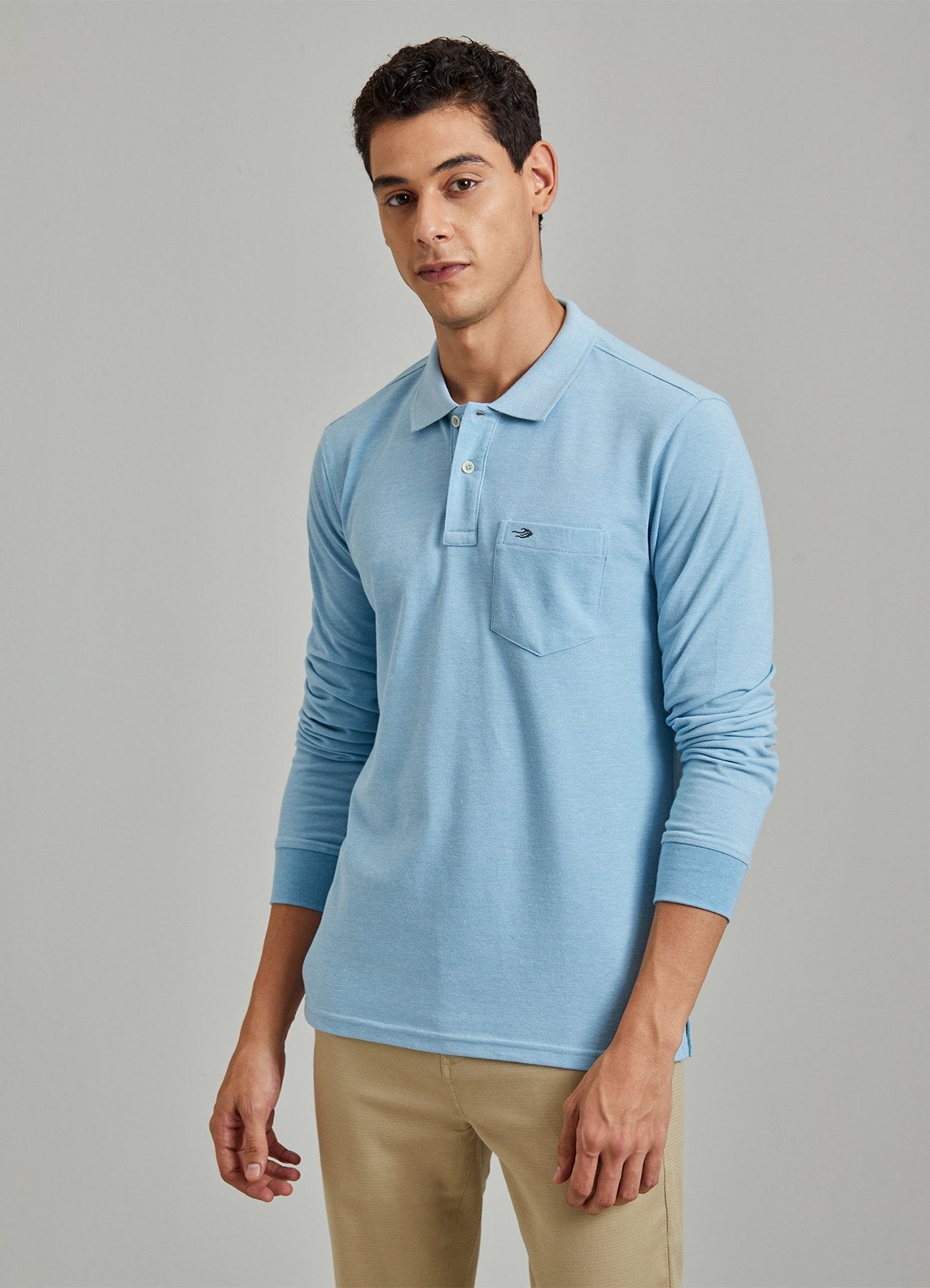 Color: Aqua Melange Fabrics Content: Cotton Blend Characteristics: Polo Pattern: Plain Fit: Regular Fit Closure: Button Pocket: 1 Occasion: Basic Length: Regular Wash Care: Machine wash according to instructions on care...