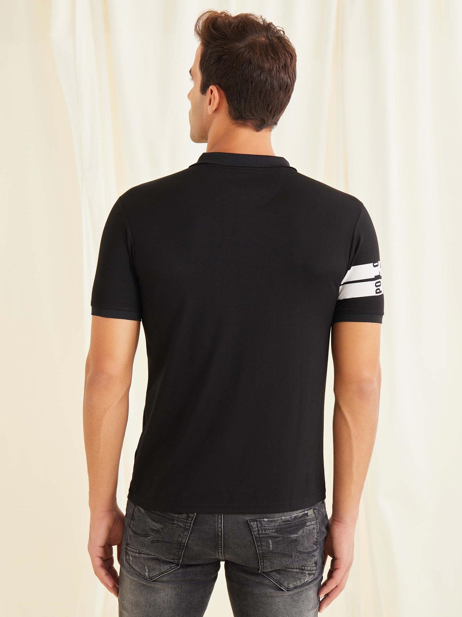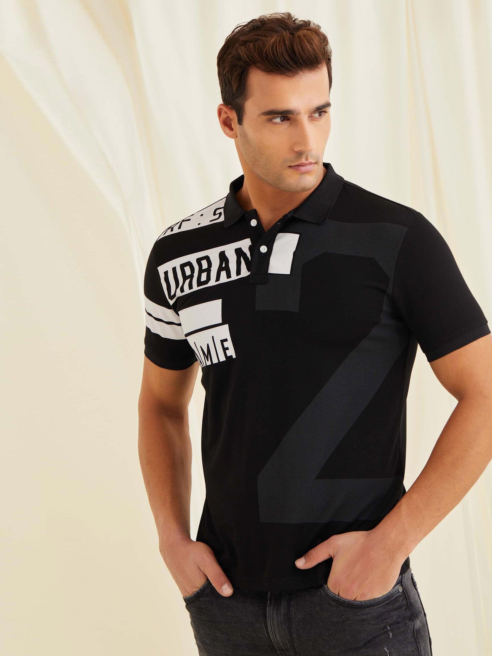 Color: Black Fabrics Content: Poly Stretch Pattern: Chest Print Sleeves: Short Sleeve Collar/Neck: Polo Collar Fit: Regular Fit Occasion: Casual Hemline: Straight Closure: Button Wash Care: Machine wash according to instructions...