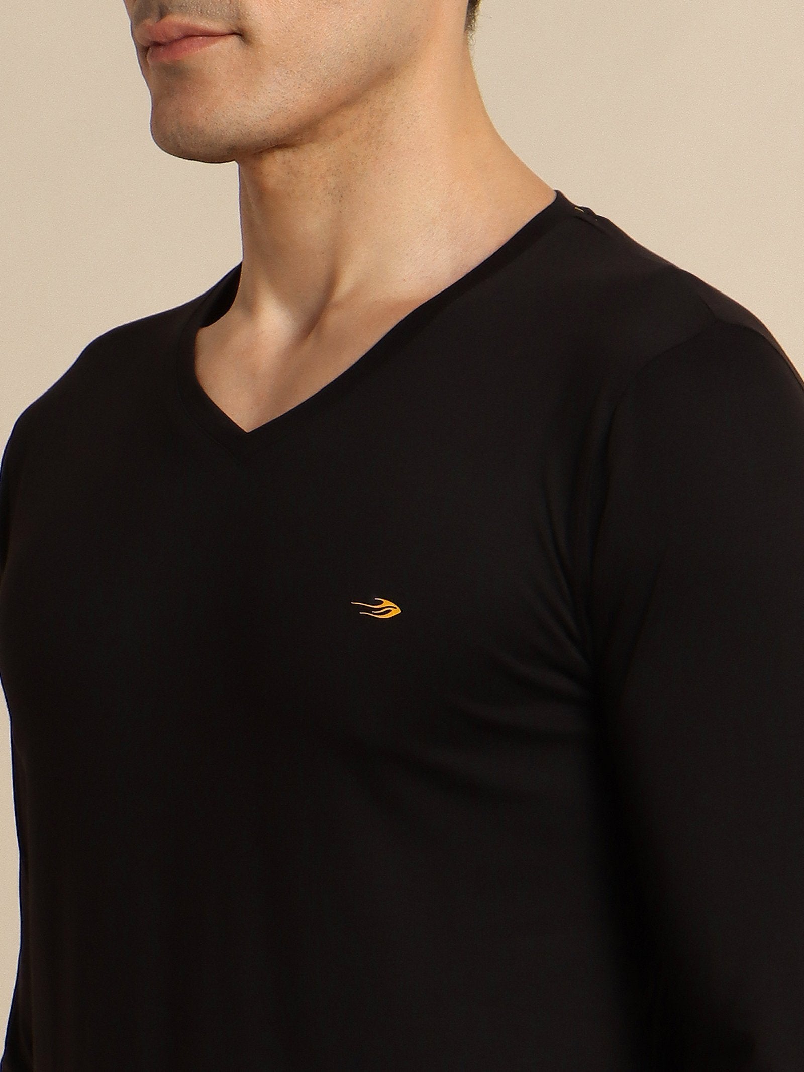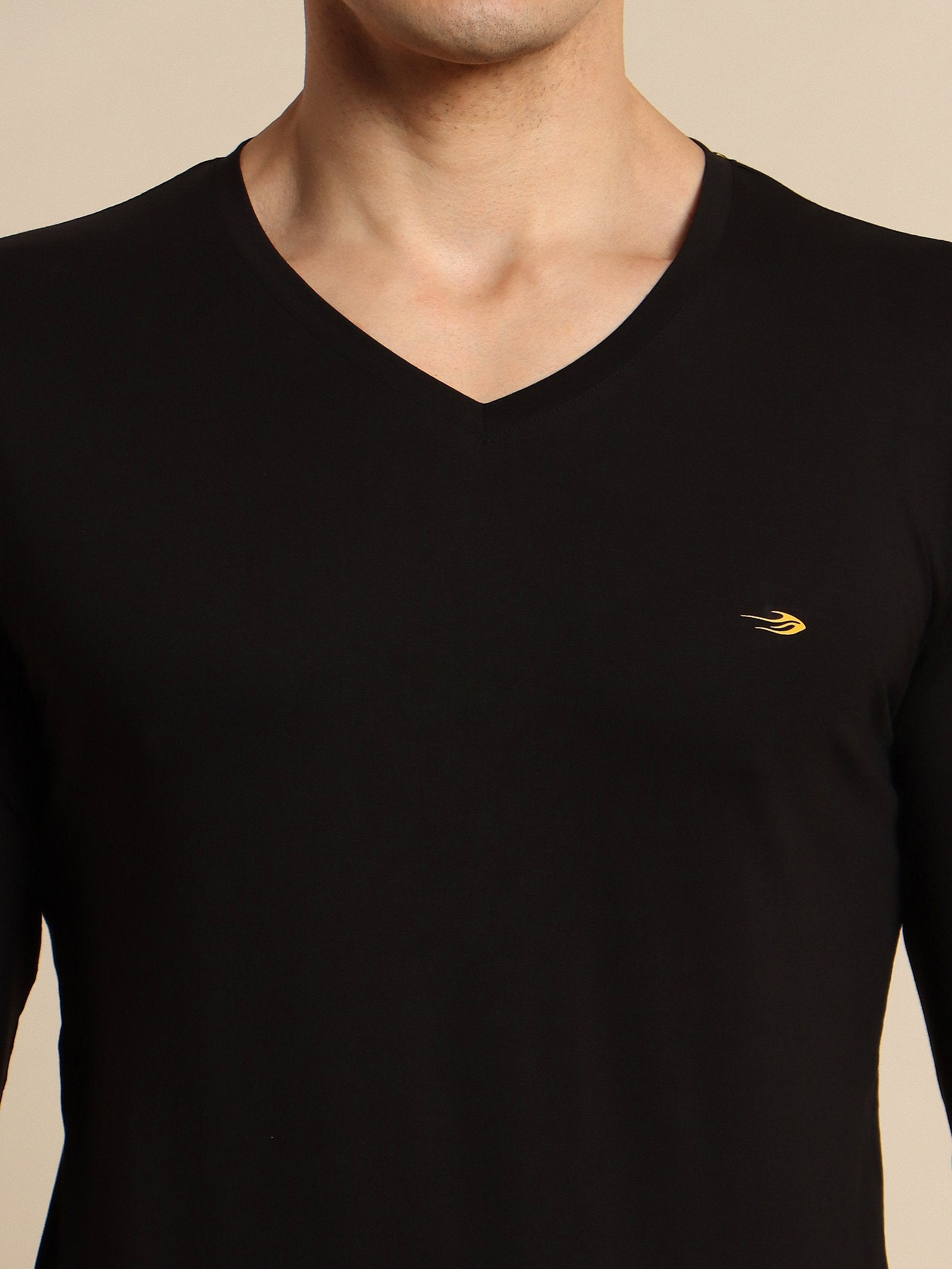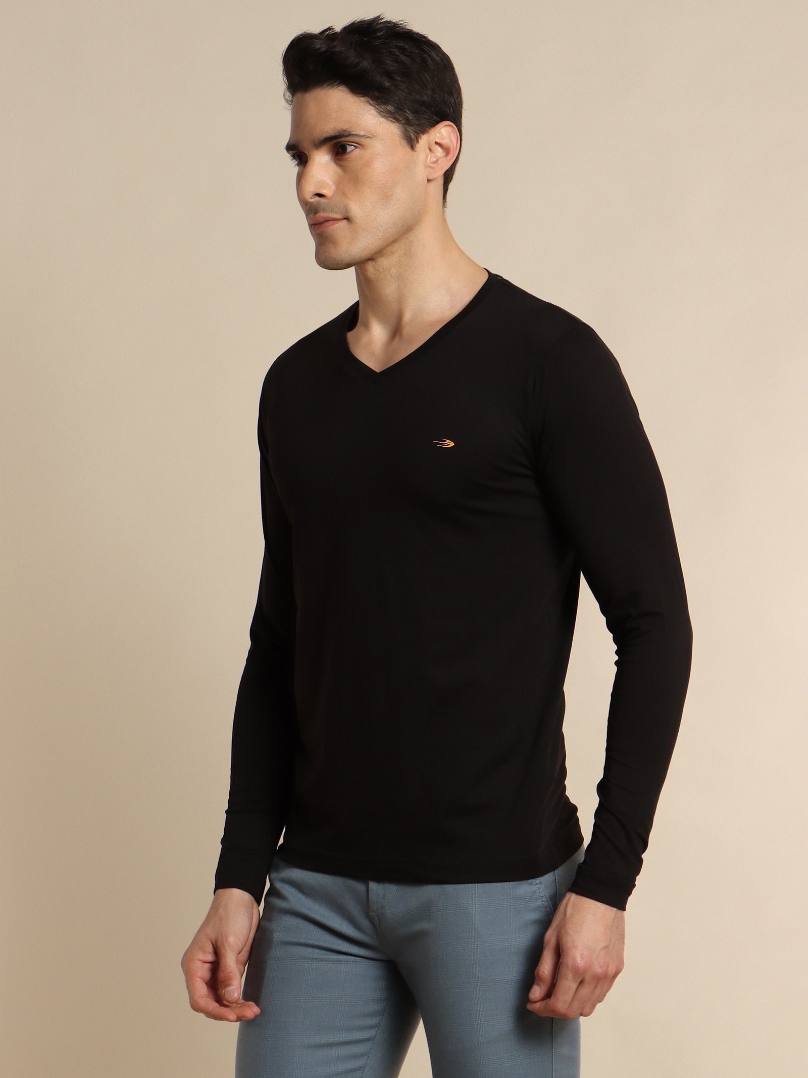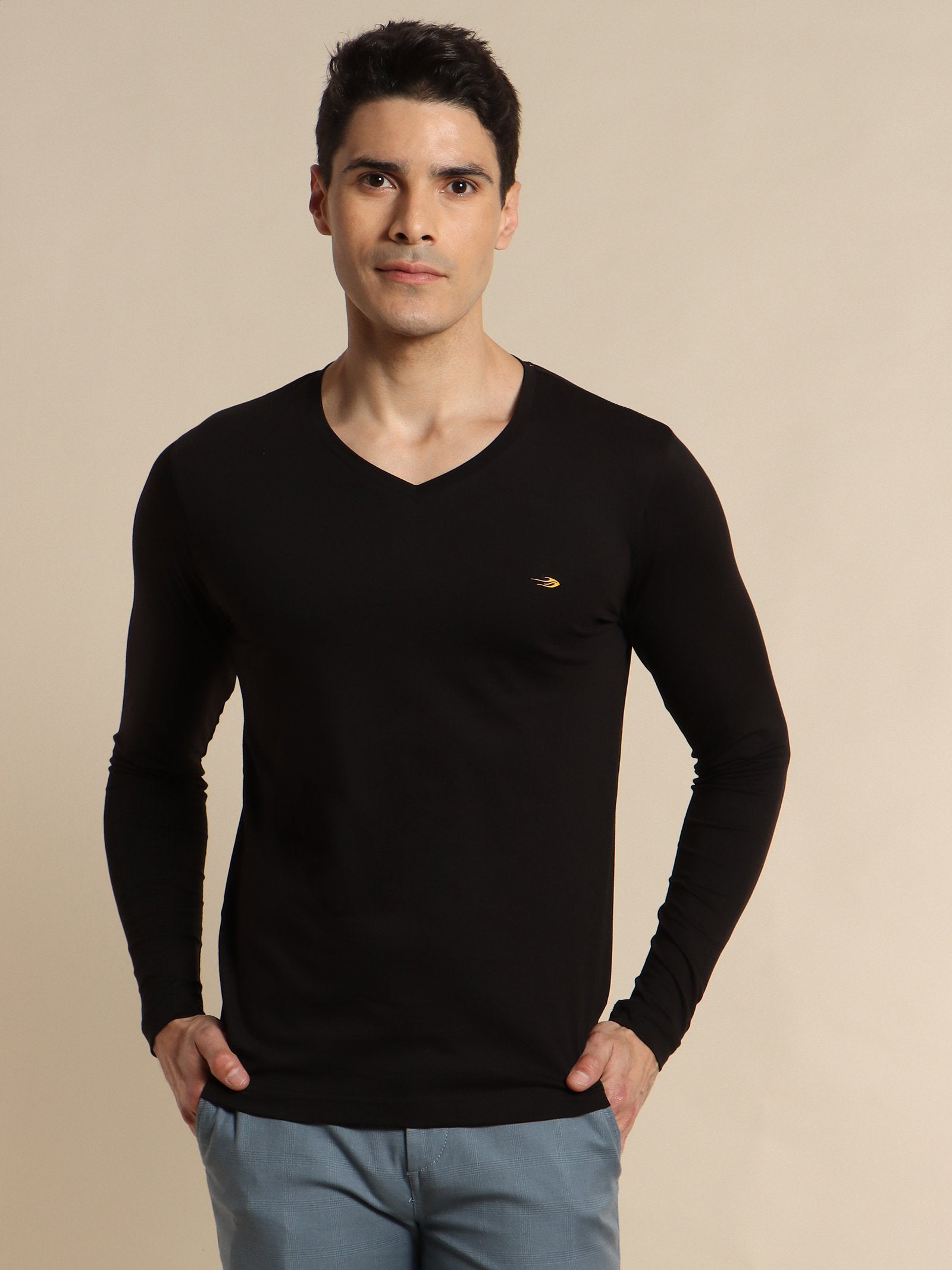 Color: Black Fabric: 95% Cotton 5% Stretch Characteristics: Stretch Pattern: Plain Sleeve: Long Sleeve Collar/Neck: V-Neck Fit: Regular Fit Occasion: Basic Hemline: Straight Wash Care: Machine wash according to instructions on...