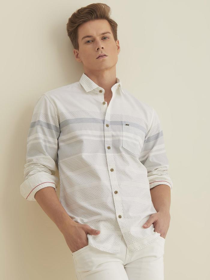 Color: Blue Fabric: 100% Cotton Pattern: Printed Sleeves: Long Sleeve Collar/Neck: Spread Collar Pocket: 1 Fit: Casual Fit Occasion: Casual Hemline: Curve Closure: Button Wash Care: Machine wash according to instructions on care label Model Hight: 6 Ft