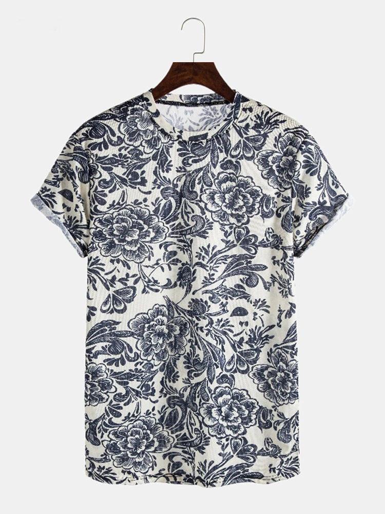 - A contemporary fantasy printed T-shirtshirt in unique flower design with cream colour in classic way.