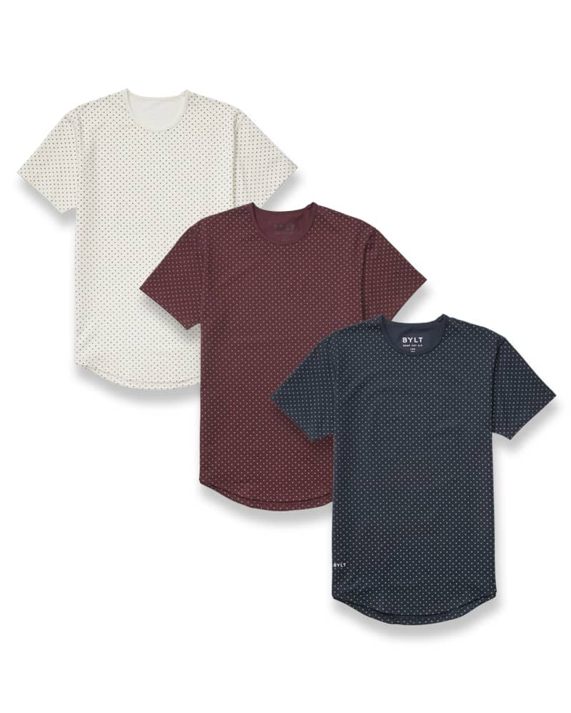 Drop-Cut Hemline LUX Blend™ Fabric Tight-Knit, Cool-Touch Material Uniquely Elevated Dotted Pattern
