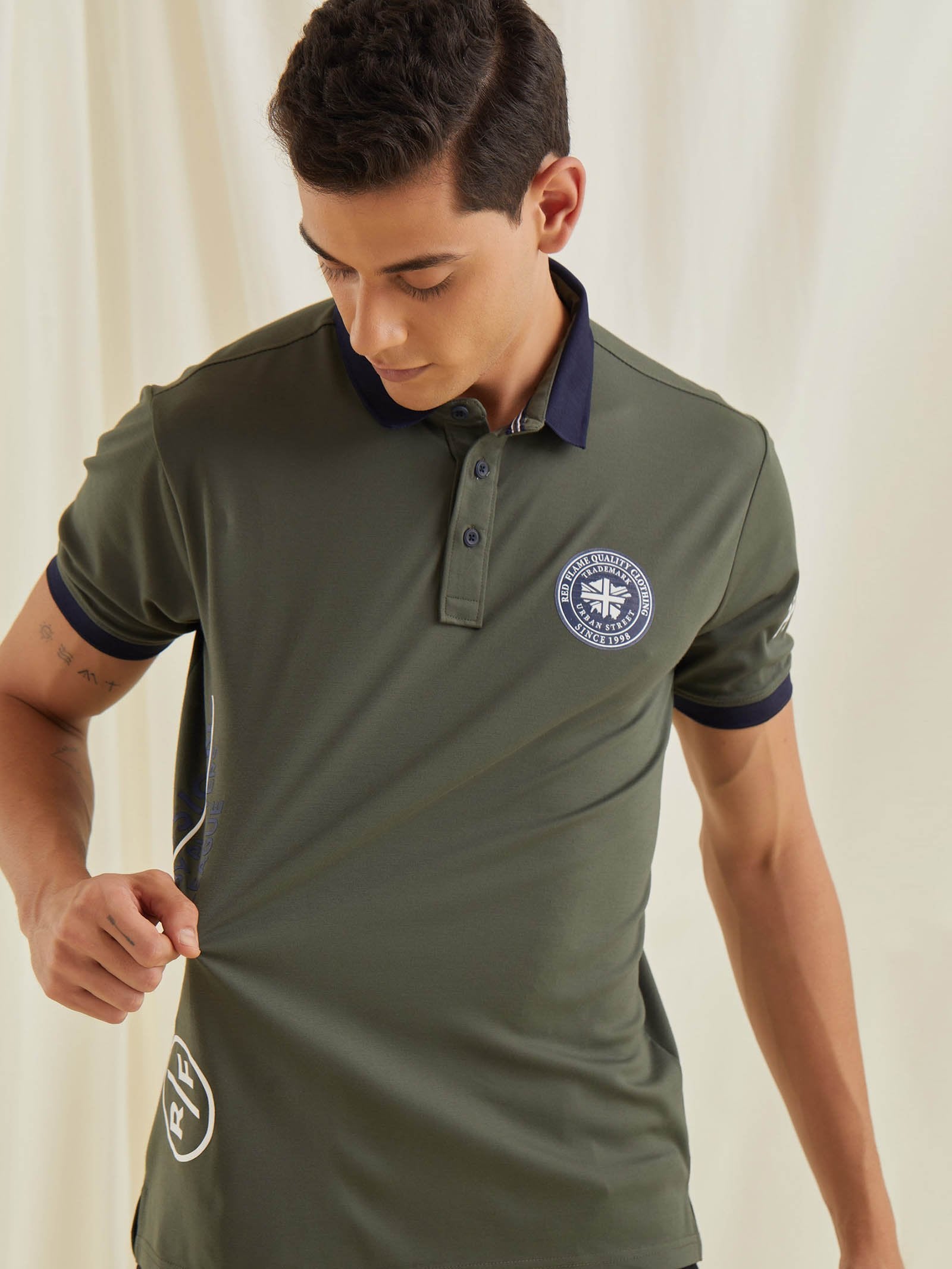 Color: Green Fabrics Content: Poly Stretch Pattern: Chest Print Sleeves: Short Sleeve Collar/Neck: Polo Collar Fit: Regular Fit Occasion: Casual Hemline: Straight Closure: Button Wash Care: Machine wash according to instructions...